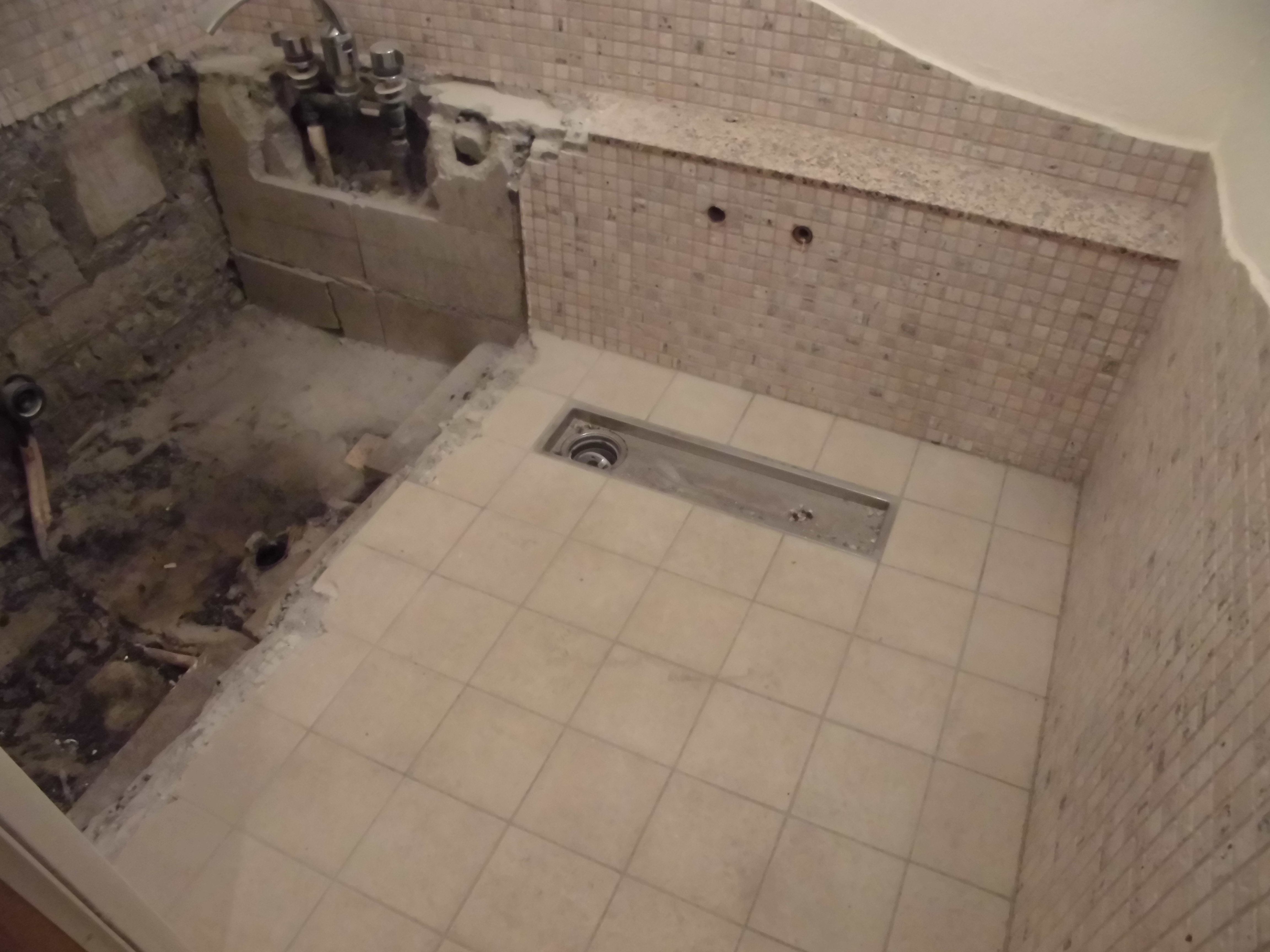 施工中:湯舟を取外し、施工をしやすいように蛇口等外します。