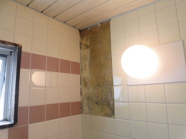 - 浴室パネル張替。壁のタイルを壊さず、上から清潔なパネルを貼る短期間施工。