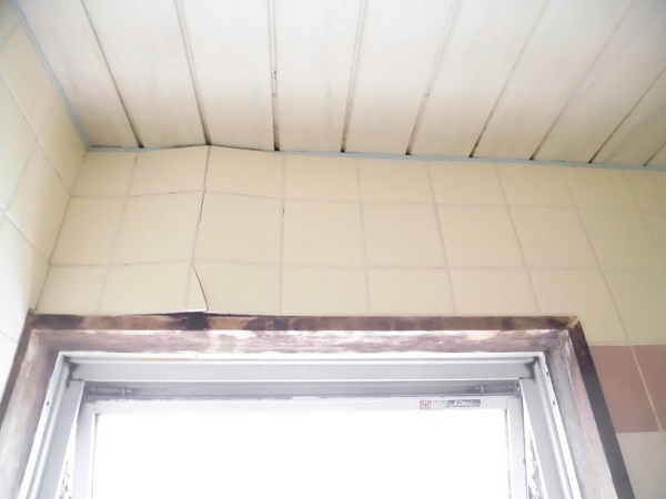 タイルが山なりに盛り上がっています。このままでは歩行が難しく、怪我をする可能性が高い非常に危険な状態でした。
