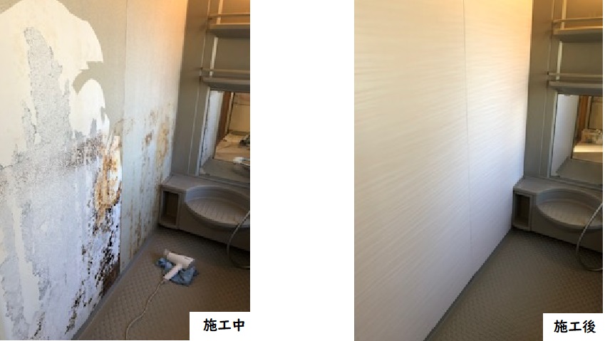この度のお宅は壁面パネルにリーズナブルなデザインシートをDIYしたそうですが、壁面パネルとシートの隙間に水気が入り込み壁面パネルの防水能力を低下させてしまった様です。