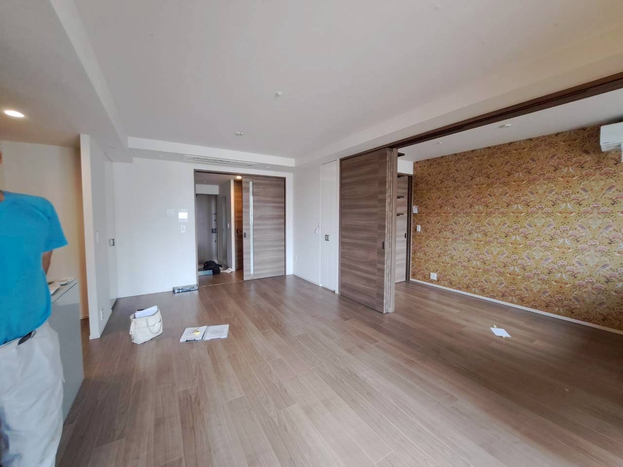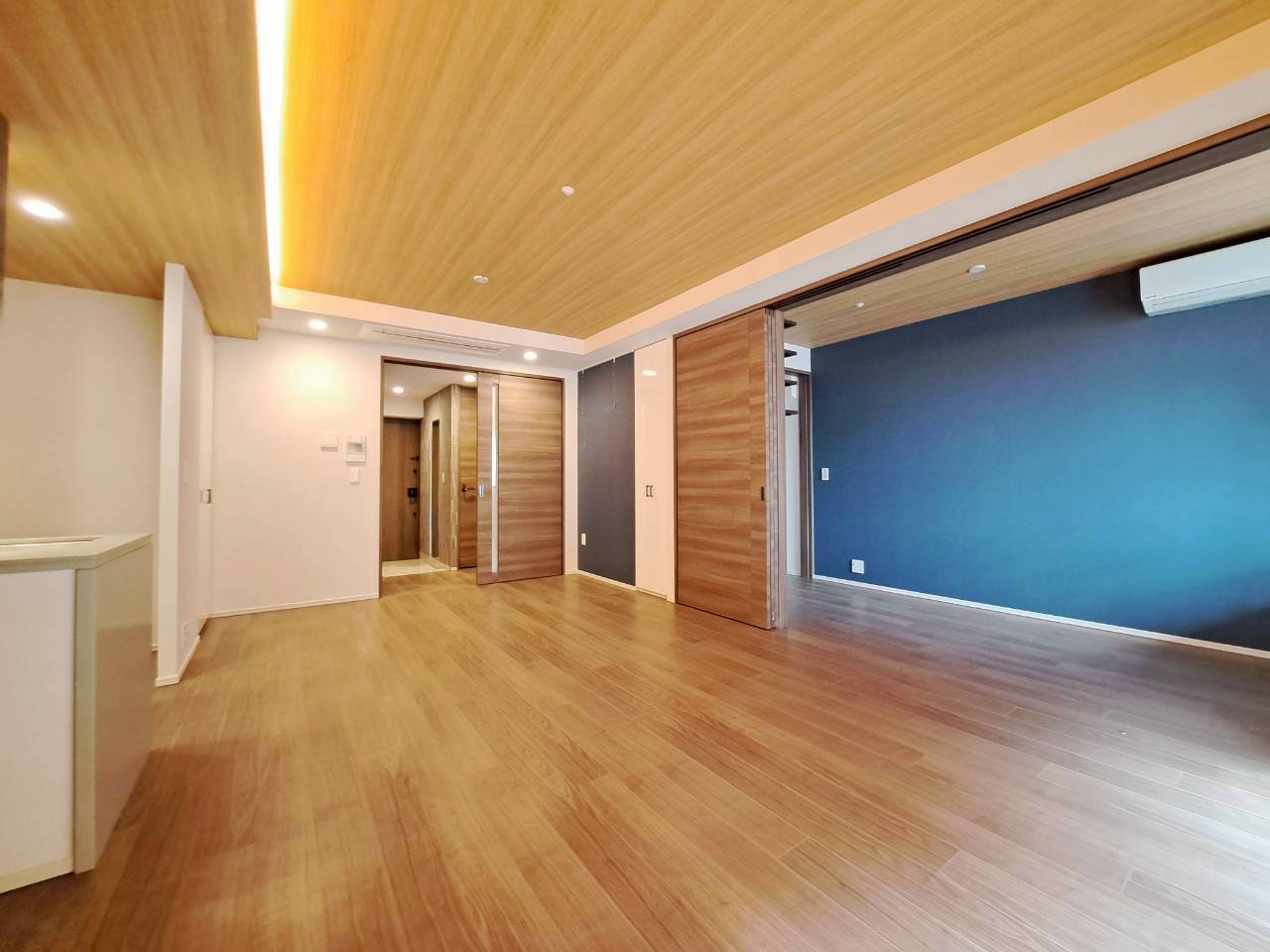 壁面と一体化させた大容量の収納を確保することで、生活感を徹底的に排除。同時に、視線が奥へと抜けるレイアウトや、足元を浮かせたフロートデザインを採用し、物理的な広さ以上の「余白」を生み出しました。 「片付けやすさ」と「広がり」。相反する二つの要素を、デザインの力で解決した空間です。