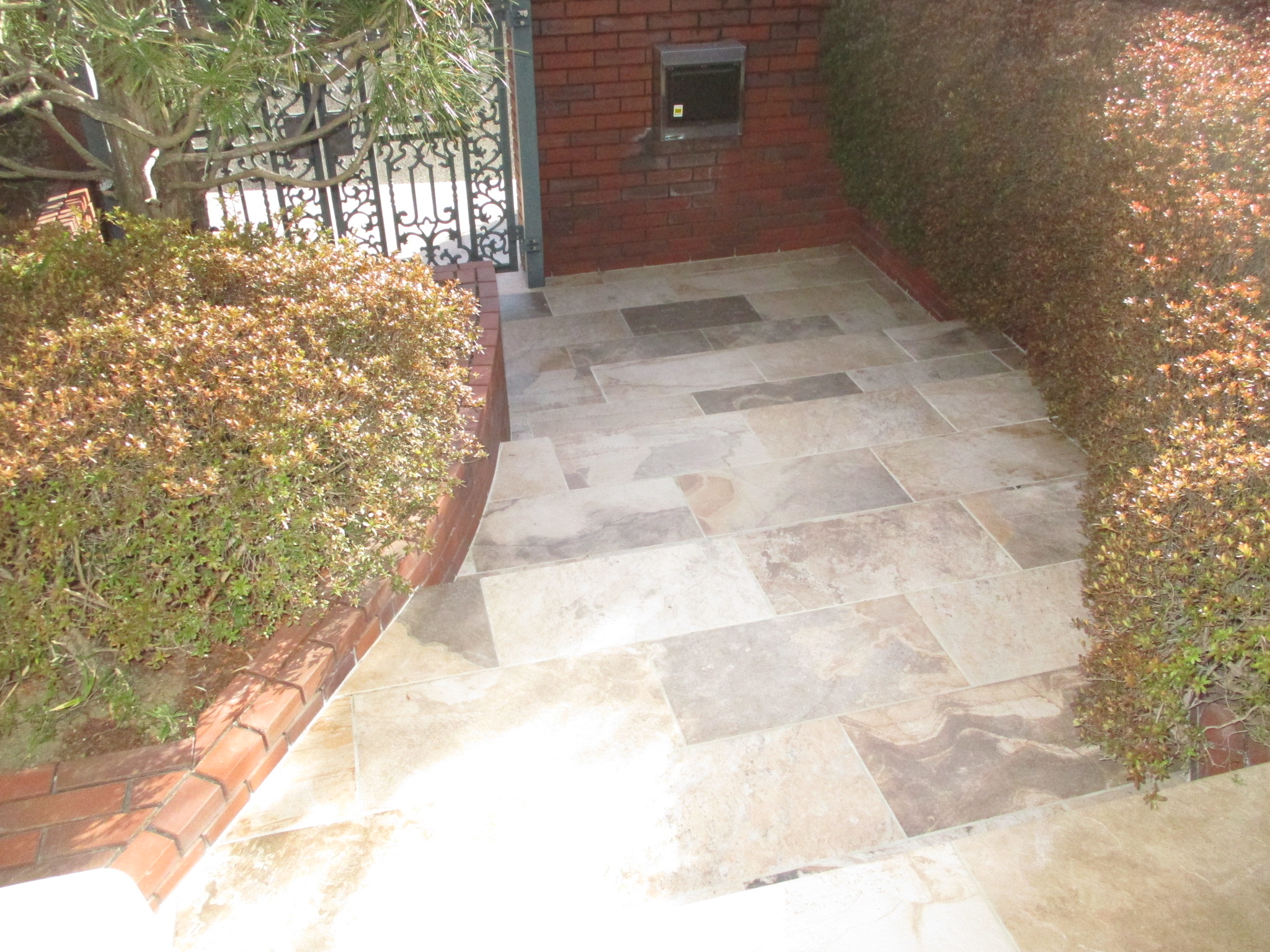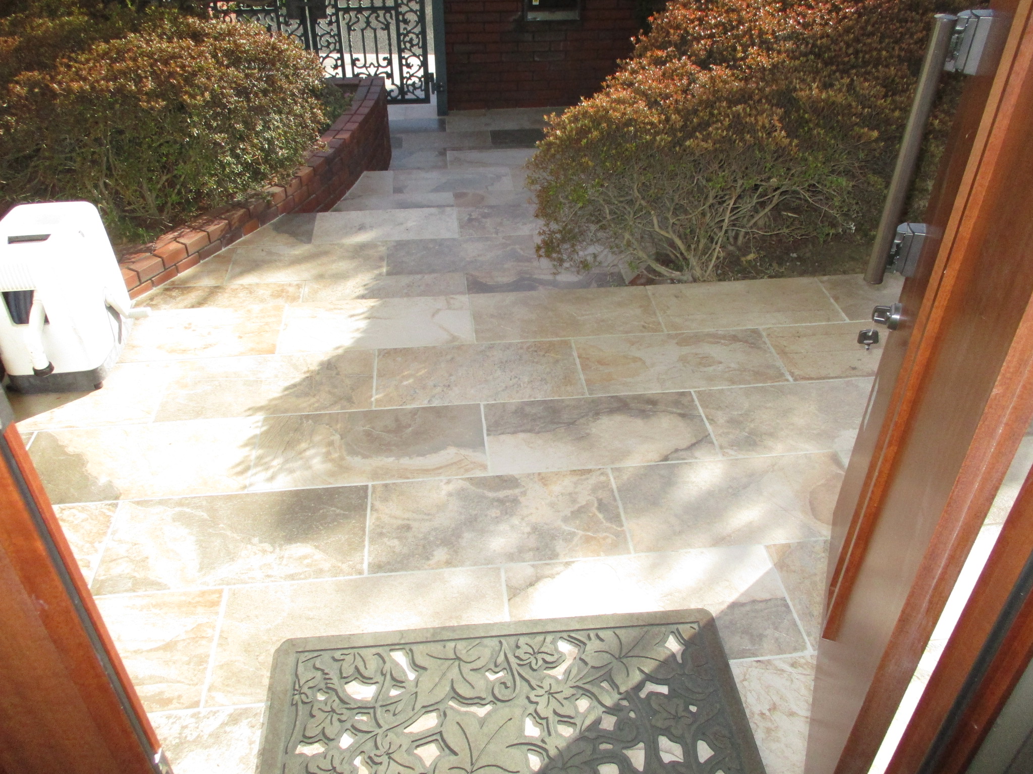 続いて、屋外のメインエリアである玄関ポーチとアプローチです。ここは最も面積が広く、通行の頻度も高いため、美しさと共に滑りにくさという実用性が求められます。
