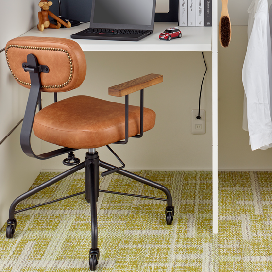 キャスターチェアのゴロゴロ音や床のキズつきが気になるときは、ユニットラグを敷くと安心。防音対策だけでなく、心地よい肌触りで快適に。