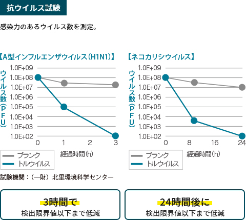 また、抗ウイルス剤の有効成分は揮発したりウイルスの接触等で減少することはありません。