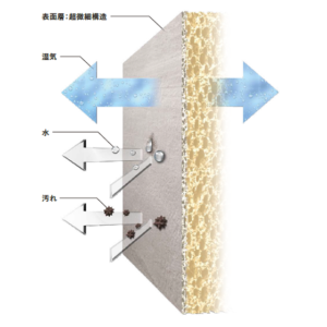 すぐれた調湿性能で快適な湿度を保とうとします。その効果は珪藻土の約6倍、調湿壁紙の25倍以上もあるんです。