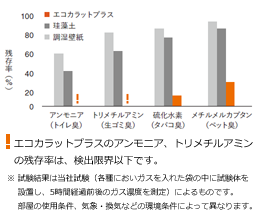エコカラットプラスは空気中に漂うそれらの有害物質を吸着し、低減します。