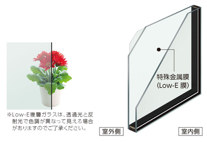 Low-Eガラスとは、特殊金属膜(酸化亜鉛と銀)をコーティングしたガラスのことを言います。