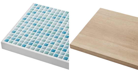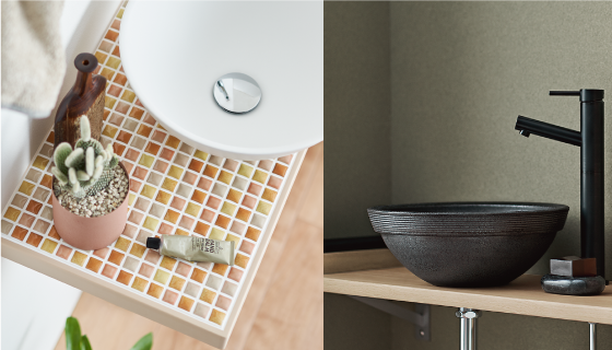 タイルカウンターは全9色。木製カウンターは全3色。手洗器や水栓との組合せによって、様々なデザインスタイルに対応します。