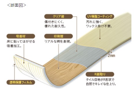 ただし、水を溢した場合、タイルの目地部分からの浸水によりタイルの吸着力が低下する恐れがありますので、ご注意ください。
