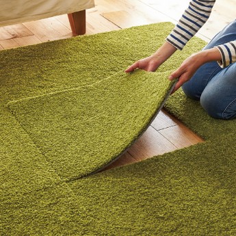 500mm×500mmサイズのユニット状なので、必要なところに手軽に敷くことができ、収納するときもコンパクト。季節ごとの模様替えも簡単にできます。また、裏面には滑り止めがついているので、安心してお使いいただけます。