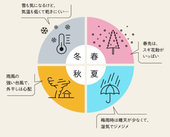 いまや室内干しは洗濯の常識となっています!季節を問わず一年中活用されています。