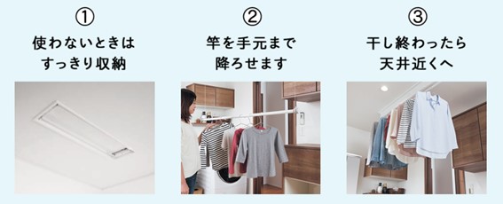 使う時だけ竿を降ろして、室内干しができちゃう室内物干しユニット『ホシ姫サマ』