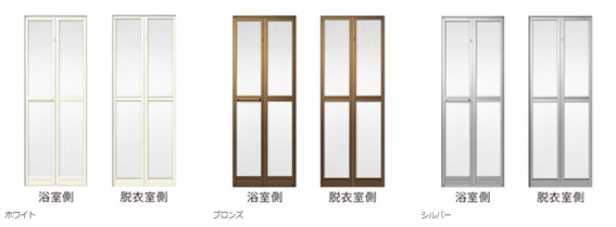 「浴室ドアB型」「ロンカラ-浴室ドア」「旧ロンカラータオル掛け」「ロンカラータオル掛け付浴室ドア」「中折Ⅱ型浴室ドア」「新中折Ⅲ型」「中折Ⅲ型」「浴室中折ドア(旧)」「浴室中折ドア」「浴室中折ドアME型(内付型)」