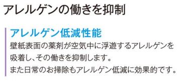 サンゲツからは「抗アレルゲン壁紙(アレルゲン抑制壁紙)」が出ています。