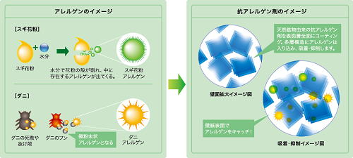 多層構造の抗アレルゲン剤の層間に取り込まれ、低減されます。