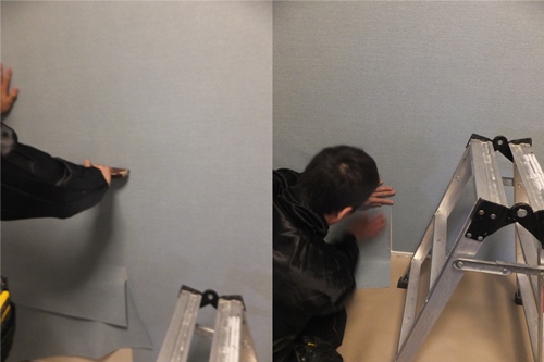 新しい壁紙に張り替える前に、今までの御壁紙を剝がします。