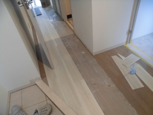 先日渋谷区にありますマンションの床リフォーム・巾木交換・見切り塗装の
