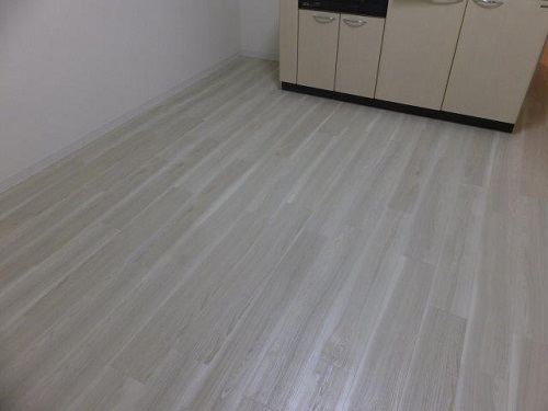 既存の薄いブラウン系のフロアタイルを、ホワイトっぽいフロアタイルに