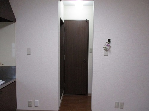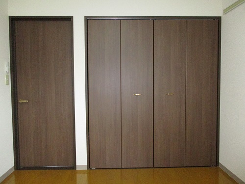 こちらの建具も洋室用のものに交換、濃いめのブラウン木調とゴールドの取っ手がお洒落な扉です♪