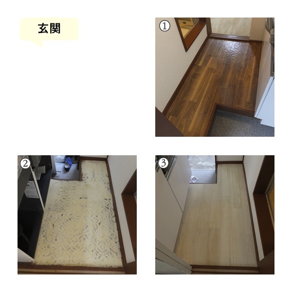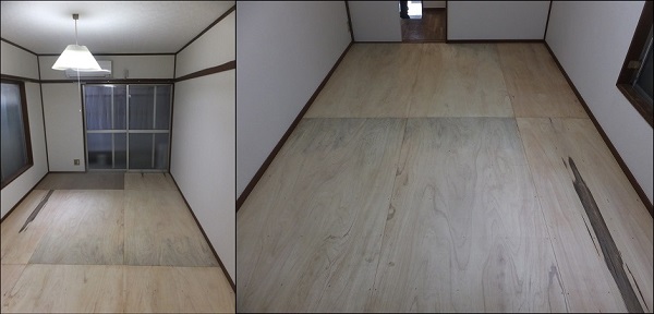 張替えは、既存の床材をはがして新しい床材を張ります。