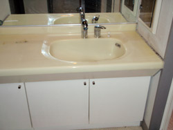 墨田区にて、カウンター新設、洗面台交換、塩ビタイル貼りの工事をやってきました。