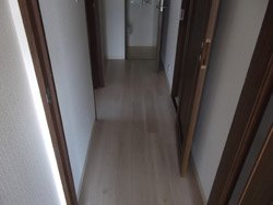 横浜市のマンションにて、古くなった廊下のフローリングを塩ビタイルに貼り替えました。