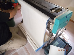 こちらの機械、壁紙糊付け機といいます。