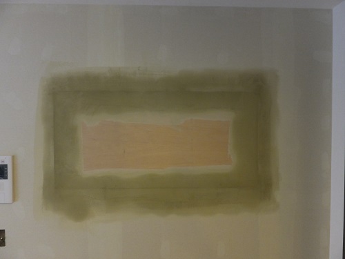 壁穴を補修し、フックを取付けるための下地補強をします。