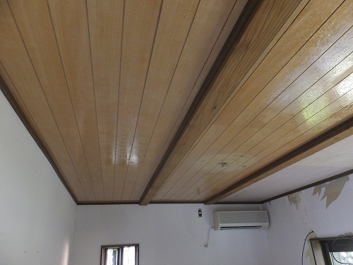 今回の天井は施工前は木材でしたが、クロス(壁紙)用に下地を作り張りました。