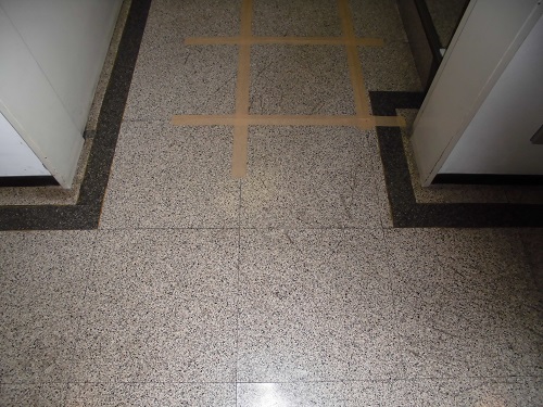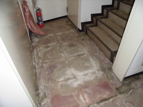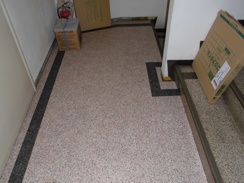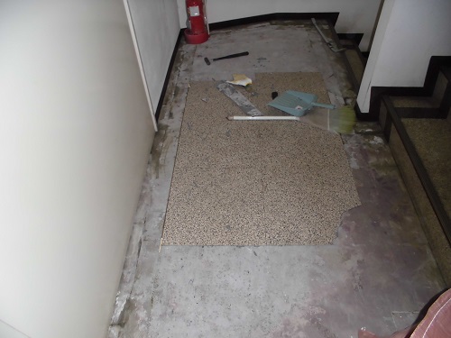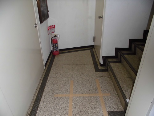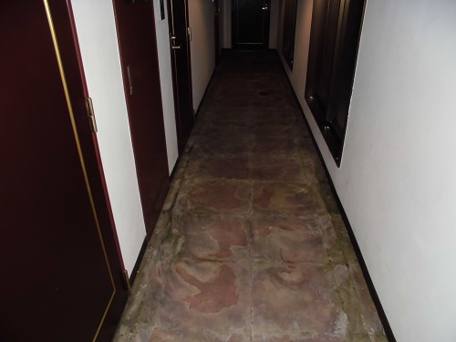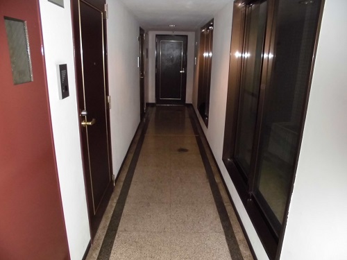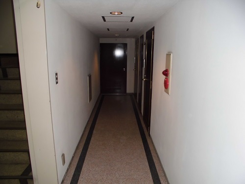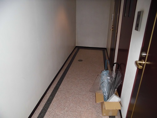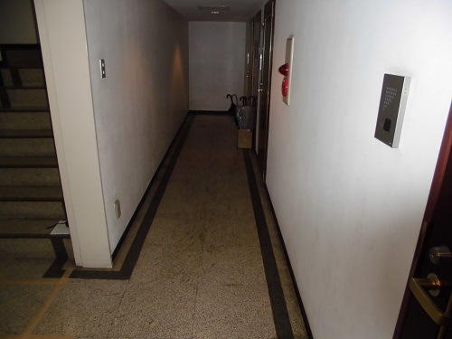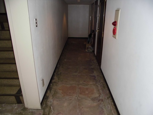 施工箇所はマンション内の共用部、廊下と階段踊り場になります。