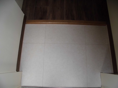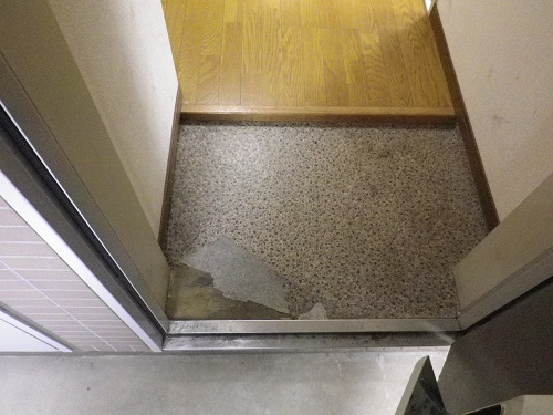 玄関は床がはがれています。