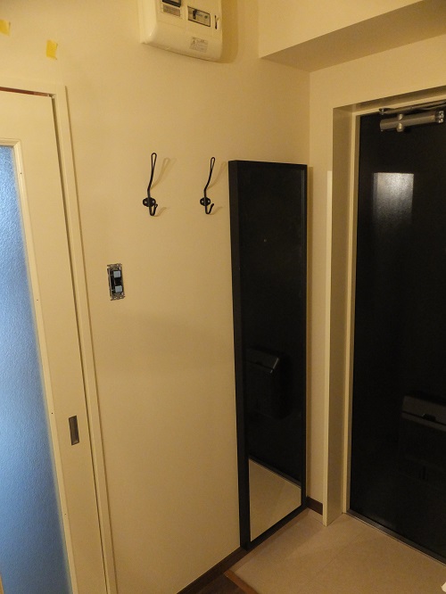 殺風景だった壁部には鏡を設置しました。