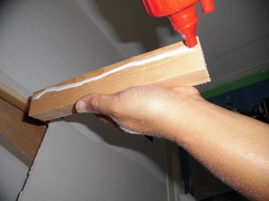 補修箇所に切り込みを入れ、切り込み個所が凹んでしまわないよう補強していきます☆(ボンド使用後ビスを打っていきます)