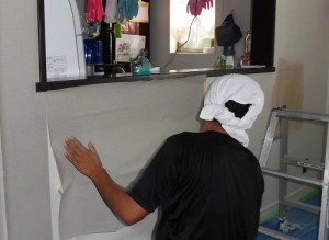 クロスを貼っていきます(今回は一面アクセントクロスで張り替えました!)