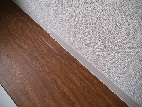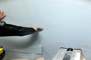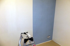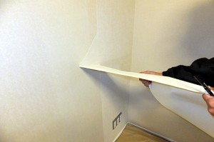 剝がしたあとは下地を整えて、アクセントクロスを張っていきます。