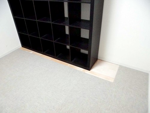 今回は棚はそのままなので、棚に沿ってカーペットを切って合わせていきます。