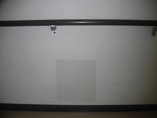 ①穴が開いてしまった部分の周りのクロスをきれいに剥がし、補修シートで覆う。