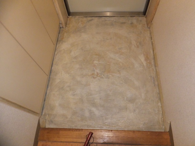 今回は、土間のクッションフロアシート材の張替えをやってまいりましたのでご紹介いたします。