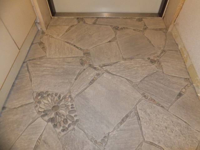 かわいらしい花模様がさりげない素敵な土間になりました♪