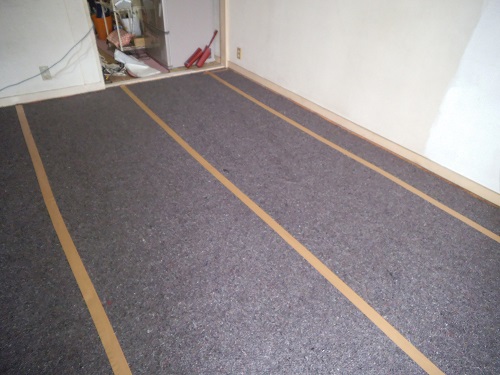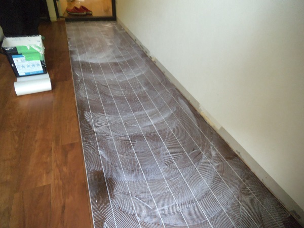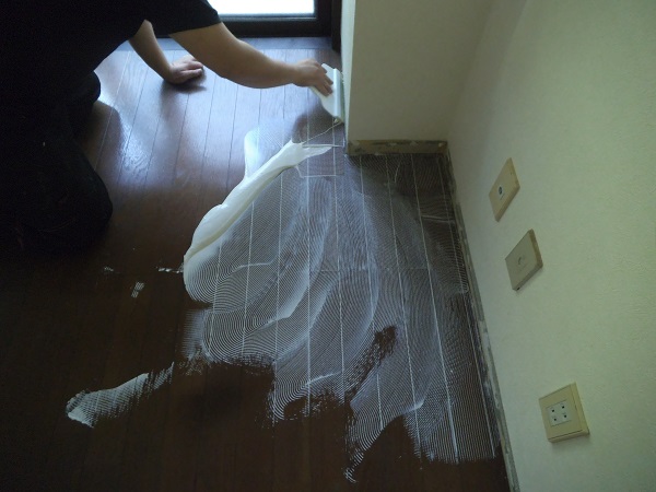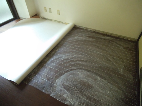 既存のCFを剥がし、ならした後糊をのばしていきます