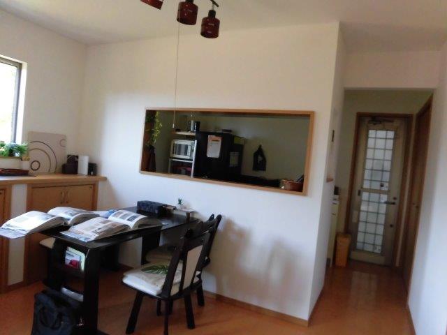 LD内のカウンターキッチン側の壁をレンガ調の柄クロスでアクセント張りにされたい