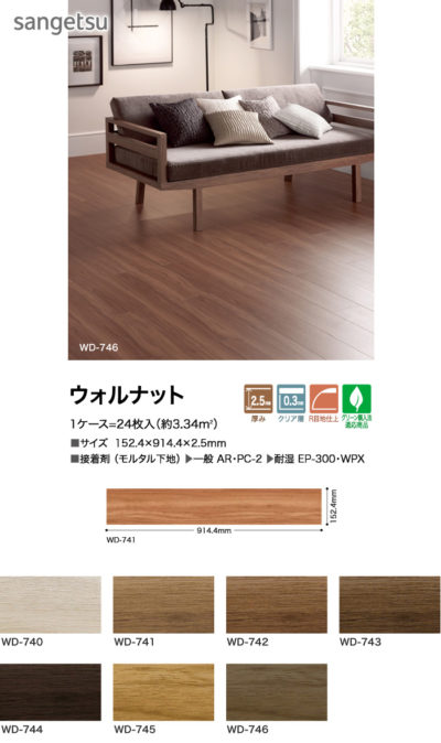 今回使用しましたフロアタイルはサンゲツのWD-740です!