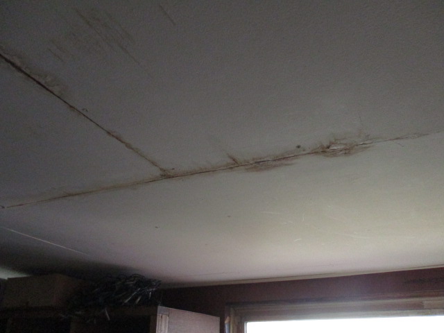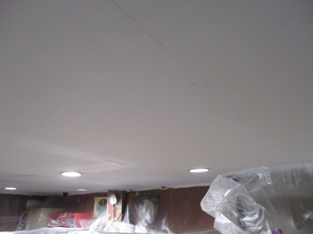 天井は雨漏りによる汚れやシミが点在しておりますので塗装を致します。