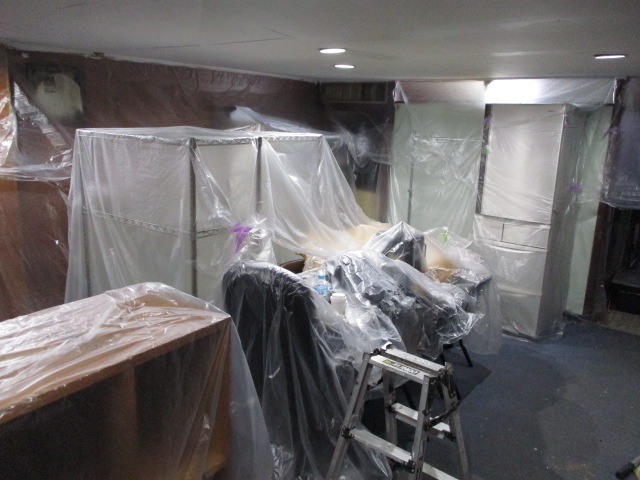 先に天井の塗装から始めますが、営業時間外の深夜に作業をスタート。