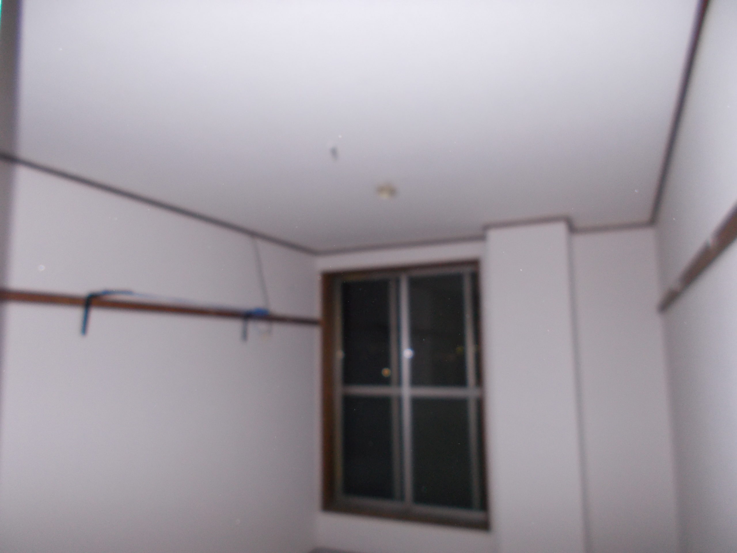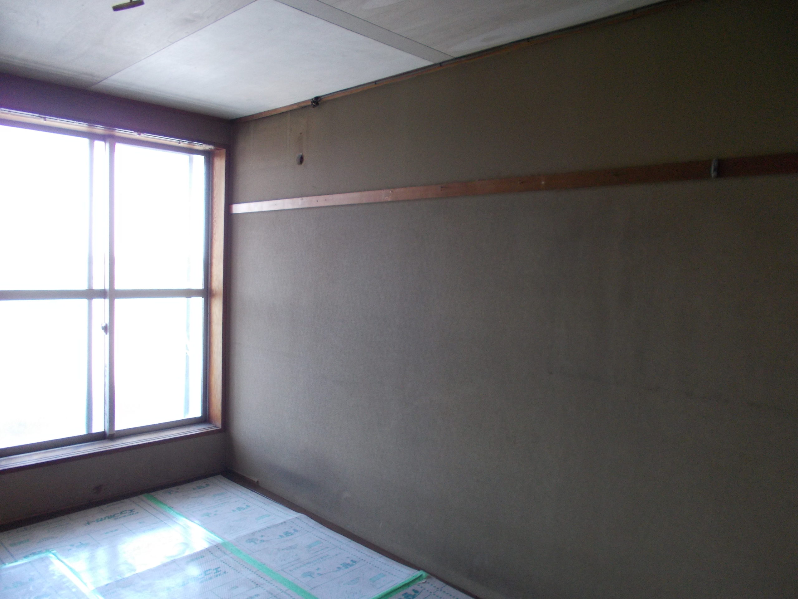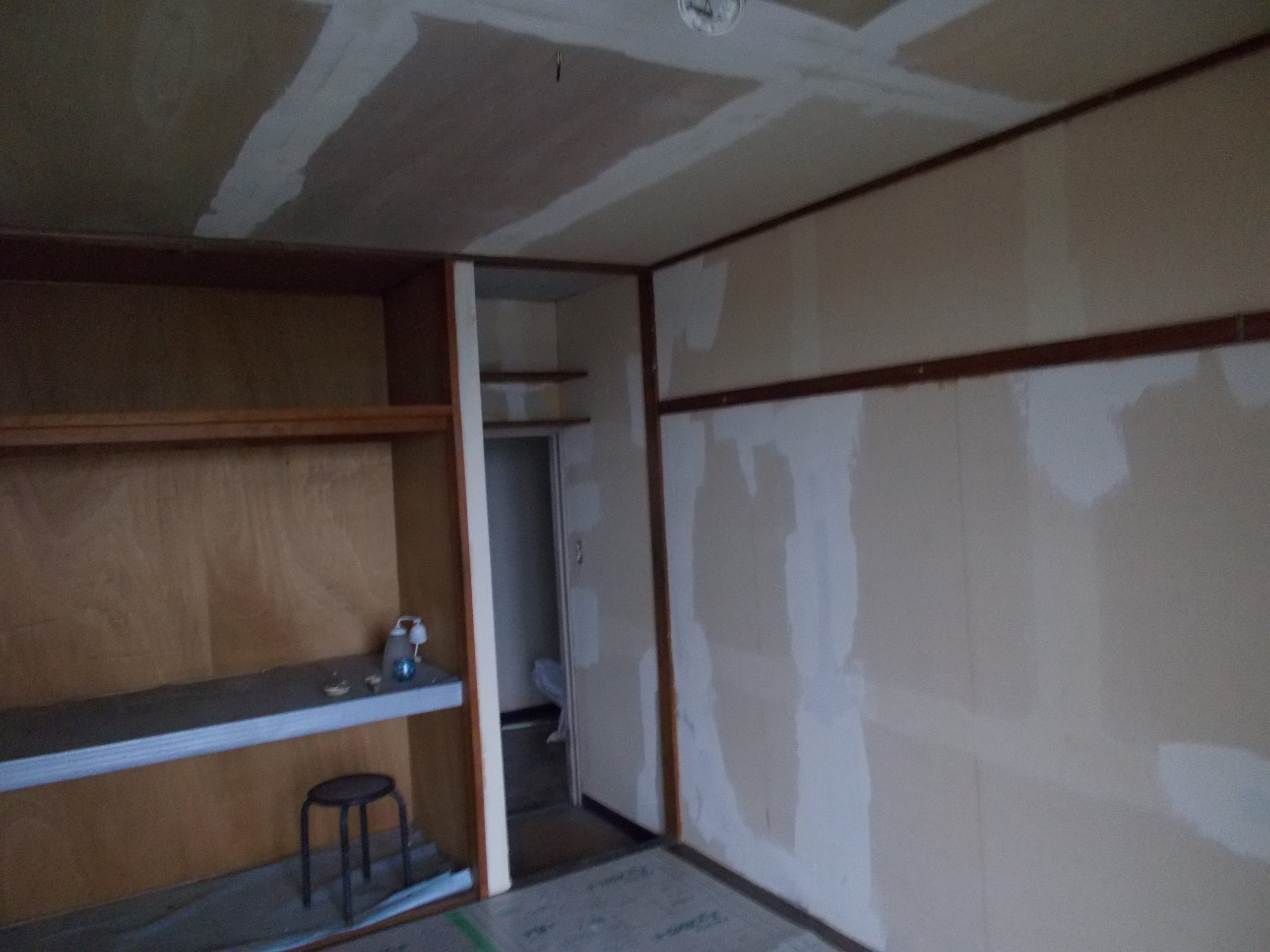 すべての下地処理が完了し、新しいクロスを丁寧に張り込みました。壁や天井に白いクロスを張りました。今回の写真は、時間帯のせいで暗くて申し訳ありませんが、実際には以前とは比較にならないほど明るい室内空間へと生まれ変わりました。施工後の様子をご覧ください。
