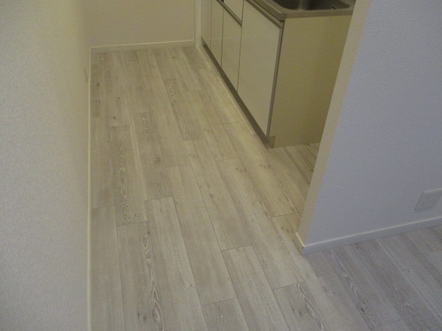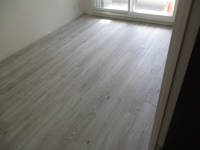 熟練の技術者が、既存のフローリングを下地として丁寧に清掃と補修を行い、その上に専用の接着剤でフロアタイルを一枚ずつ丁寧に上貼りいたしました。完成したお部屋の様子をご覧ください。