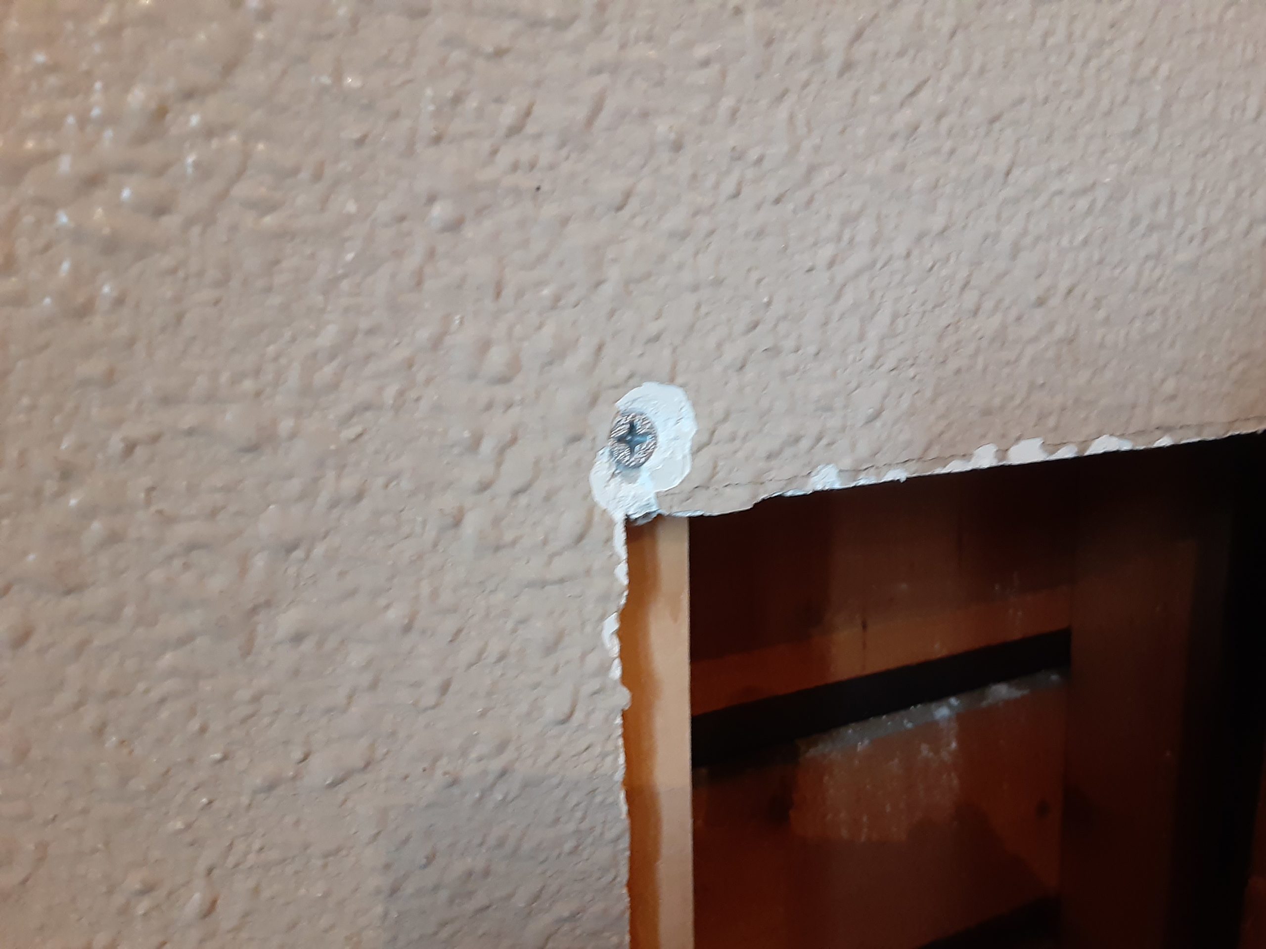 既存のボード側からビスを打ち、裏側の垂木をガッチリと固定いたしました。これが新しい壁の支えになります。
