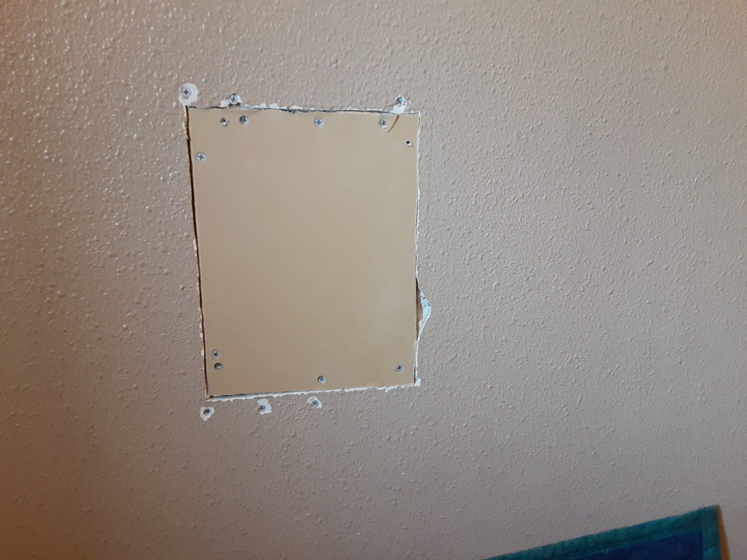 施工前 石膏ボードに開いた二十センチ四方の大きな穴