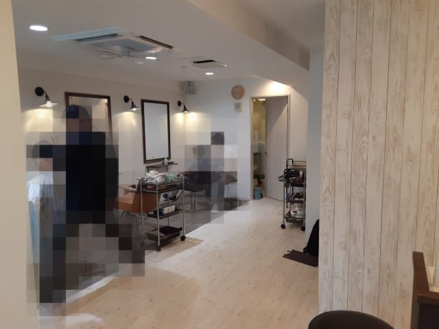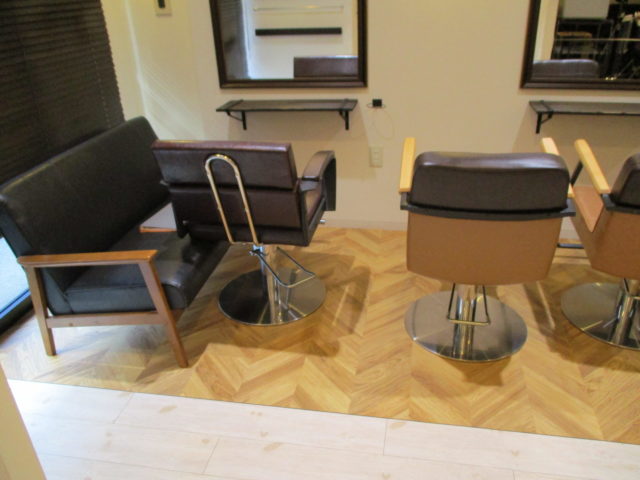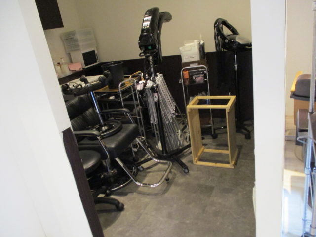 まずは店内のチェアー等のお荷物を半分に寄せ、作業スペースを確保いたします。