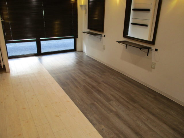 落ち着いた木目調のフロアタイルにより、店内の雰囲気が劇的に洗練されました。